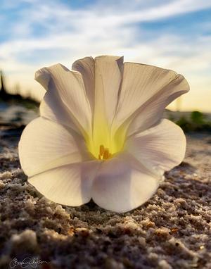 "Awaken to nature's radiant beauty with 'Morning Majesty: Coastal Bloom,' a captivating photograph by Beau Gustafson. This stunning image transforms a delicate beach flower into a majestic, statue-like wonder, as if crafted by the sea itself.